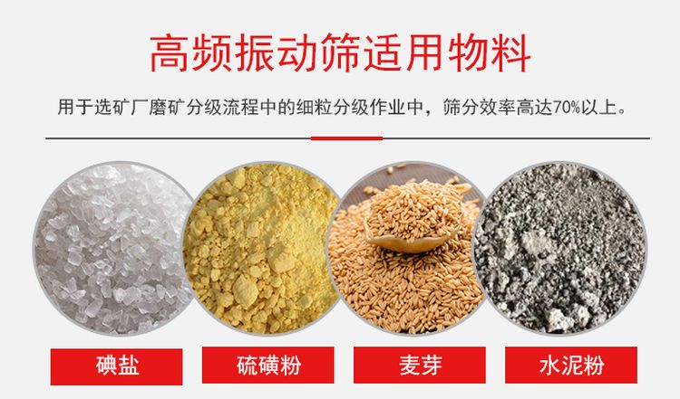 而高頻振動(dòng)篩用于選礦廠磨礦分級(jí)流程中的細(xì)粒分級(jí)作業(yè),在適當(dāng)?shù)慕o料濃度、給料粒度(-200目粒級(jí)含量)、以及需求篩下粒度與給料粒度之差小于30個(gè)百分點(diǎn)的條件下,篩分效率高達(dá)70%以上。