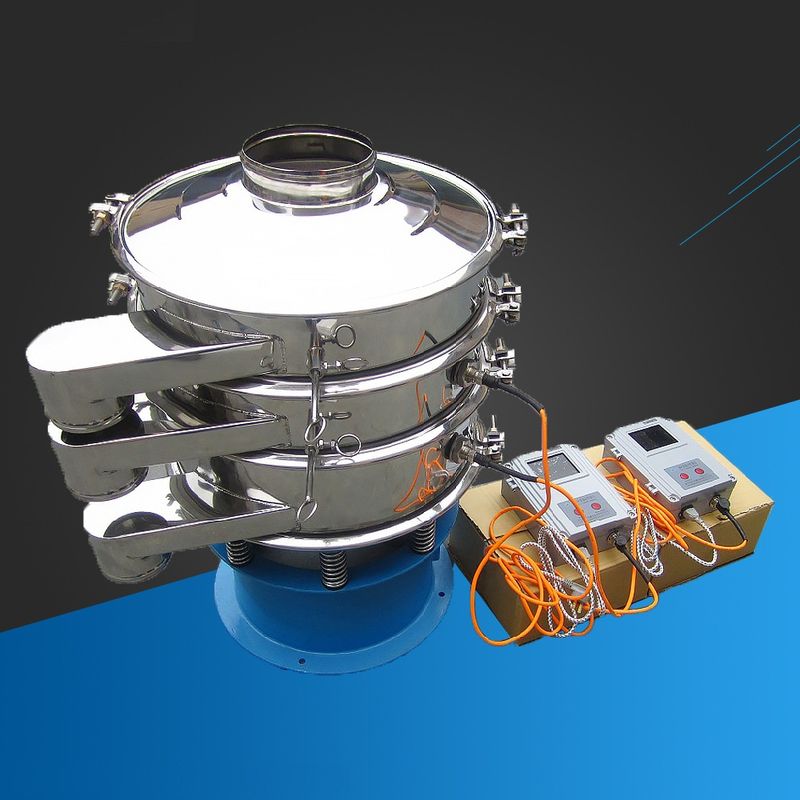 超聲波振動篩是將220V、50Hz或110V、60Hz電能轉(zhuǎn)化為36KHz的高頻電能,輸入超聲換能器,將其變成36KHz機(jī)械振動,產(chǎn)生的功率超聲波使篩網(wǎng)作高頻振動。篩網(wǎng)上的物料在作低頻旋振運(yùn)動的同時,疊加上超聲振動,既可防止網(wǎng)孔堵塞,又可使篩分機(jī)提高產(chǎn)量和質(zhì)量,從而達(dá)到快速篩分和清網(wǎng)的目的,使超微細(xì)粉篩分成為易事。該系統(tǒng)在傳統(tǒng)的振動篩基礎(chǔ)上在篩網(wǎng)上引入一個低振幅、高頻率的超聲振動波(機(jī)械波),以改變超微細(xì)分體的篩分性能。特別適合高附加值精細(xì)分體的用戶使用。