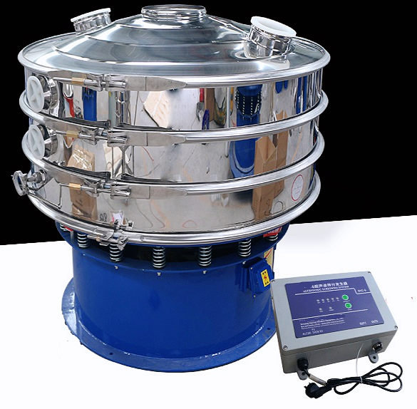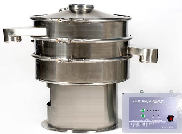 超聲波振動篩是將220V、50Hz或110V、60Hz電能轉(zhuǎn)化為36KHz的高頻電能,輸入超聲換能器,將其變成36KHz機械振動,產(chǎn)生的功率超聲波使篩網(wǎng)作高頻振動。篩網(wǎng)上的物料在作低頻旋振運動的同時,疊加上超聲振動,既可防止網(wǎng)孔堵塞,又可使篩分機提高產(chǎn)量和質(zhì)量,從而達到快速篩分和清網(wǎng)的目的,使超微細粉篩分成為易事。該系統(tǒng)在傳統(tǒng)的振動篩基礎(chǔ)上在篩網(wǎng)上引入一個低振幅、高頻率的超聲振動波(機械波),以改變超微細分體的篩分性能。特別適合高附加值精細分體的用戶使用。