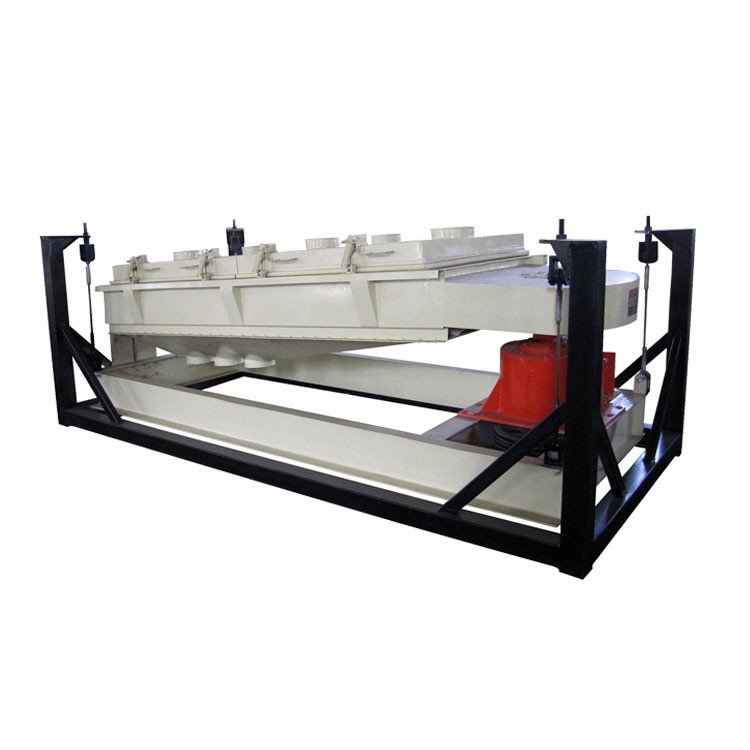 平面篩工作原理傾角為4度的篩體由傳動(dòng)箱馭動(dòng),其運(yùn)動(dòng)軌跡在進(jìn)料端為水平圓運(yùn)動(dòng)。在長(zhǎng)度方向上逐漸變成橢圓運(yùn)動(dòng)。zui后在出料端變成近似往復(fù)直線(xiàn)運(yùn)動(dòng)。