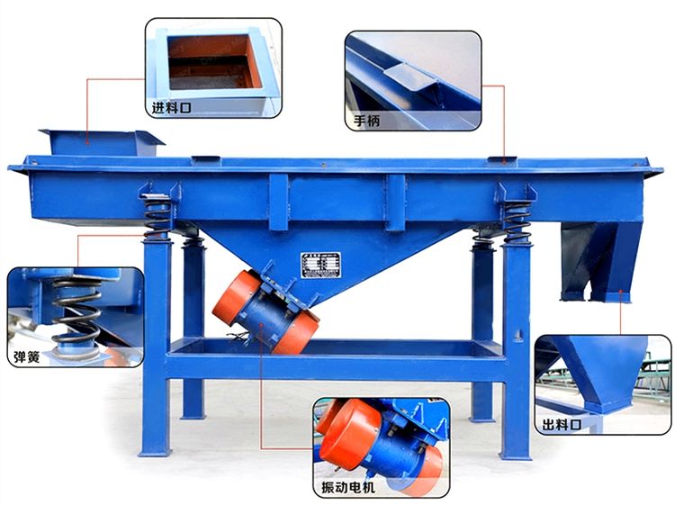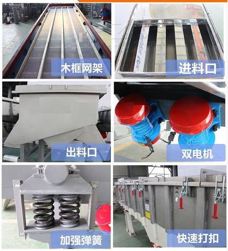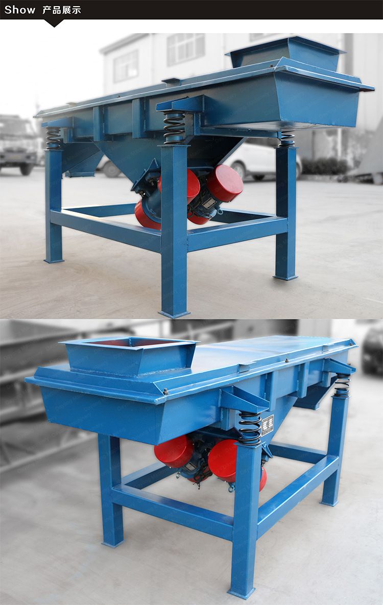 是以利用振動(dòng)電機(jī)激振作為振動(dòng)源,使物料在篩網(wǎng)上被拋起,同時(shí)受力向前做直線規(guī)則運(yùn)動(dòng),物料從給料機(jī)均勻地進(jìn)入篩分機(jī)的進(jìn)料口,通過多層篩網(wǎng)產(chǎn)生數(shù)種規(guī)格的篩上物、篩下物、從各自的出口排出。具有耗能低、產(chǎn)量高、結(jié)構(gòu)簡單、易維修、全封閉結(jié)構(gòu),無粉塵溢散,自動(dòng)排料, 更適合于高產(chǎn)能流水線作業(yè)。