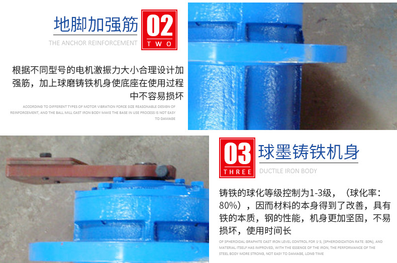 6、振泰立式振動(dòng)電機(jī)選用特制耐震軸承,可靠性高,動(dòng)力搶進(jìn)。
